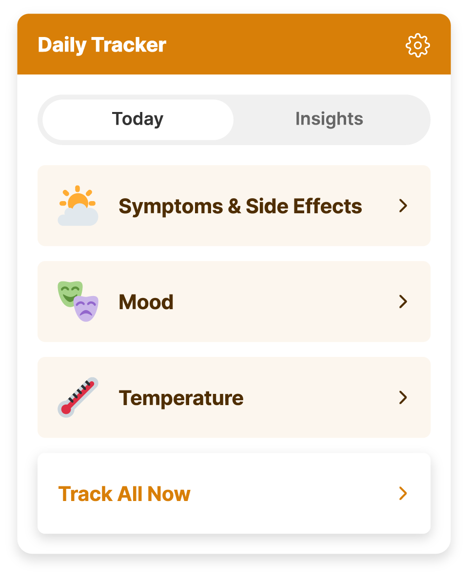 Well-being metrics help you to see and keep track of how you're doing over time, giving you more insights to bring to your medical team appointments. Integrated with Fitbit & Apple Watch tracking sleep, exercise and mood.