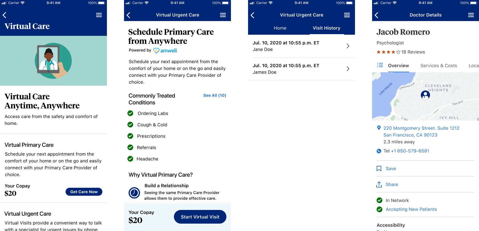 Led design for UHC's first integrated Virtual Care platform. The foundation is now the basis throughout UHC, Optum and Rally.